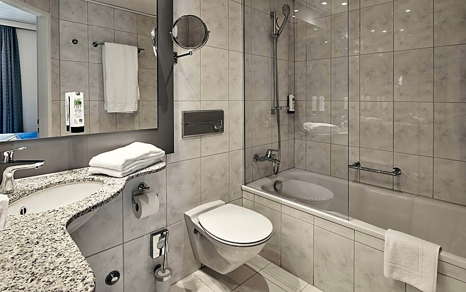 This double room features parquet floors, a seating area with a table, a flat-screen TV and an private bathroom with a bathtub or a shower.